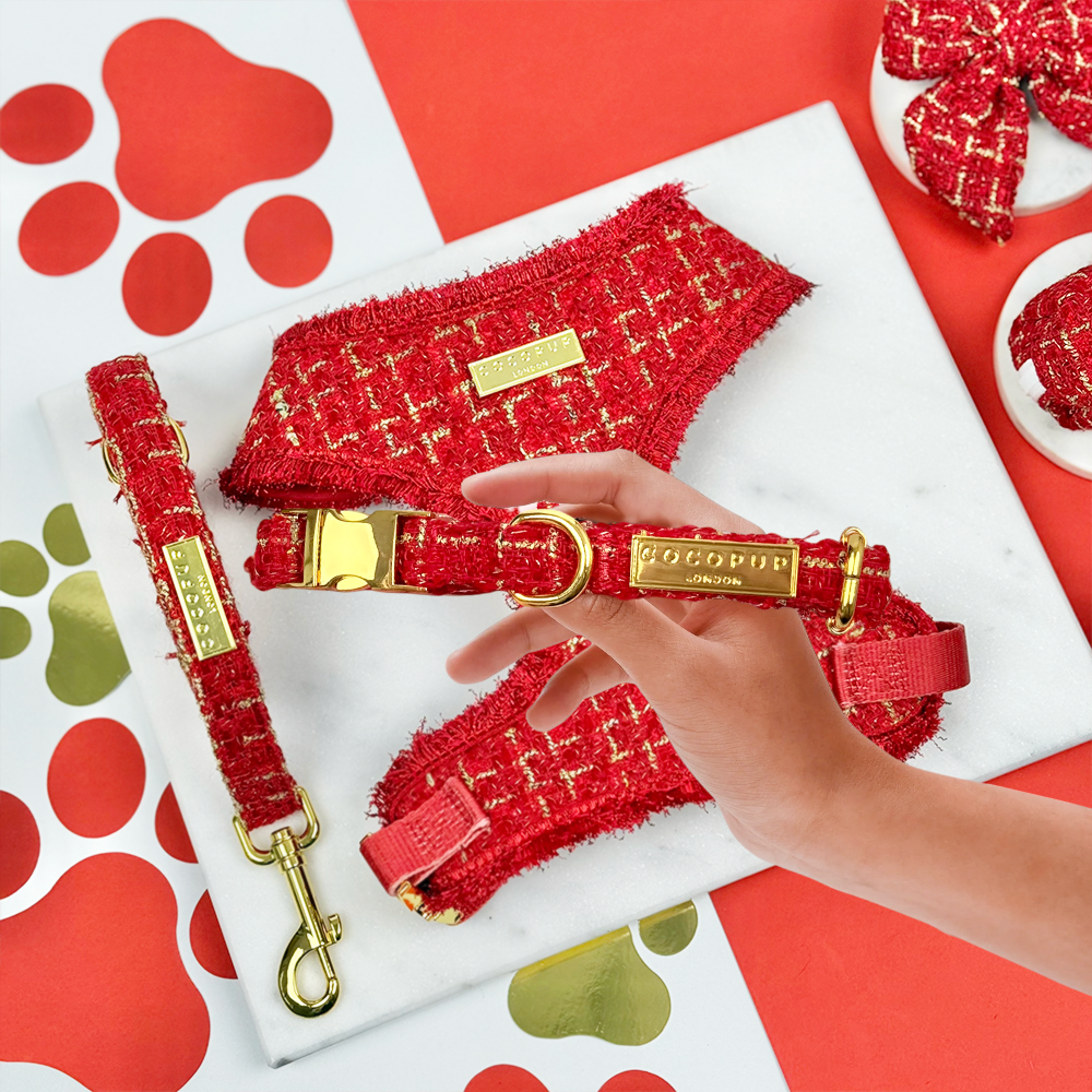 Walk your furry friend in style with our festive Red Textured Tweed Collar! Made from chic textured tweed fabric, this red-coloured collar will add a touch of elegance to any dog walk. Perfect for your fashion-forward pooch.