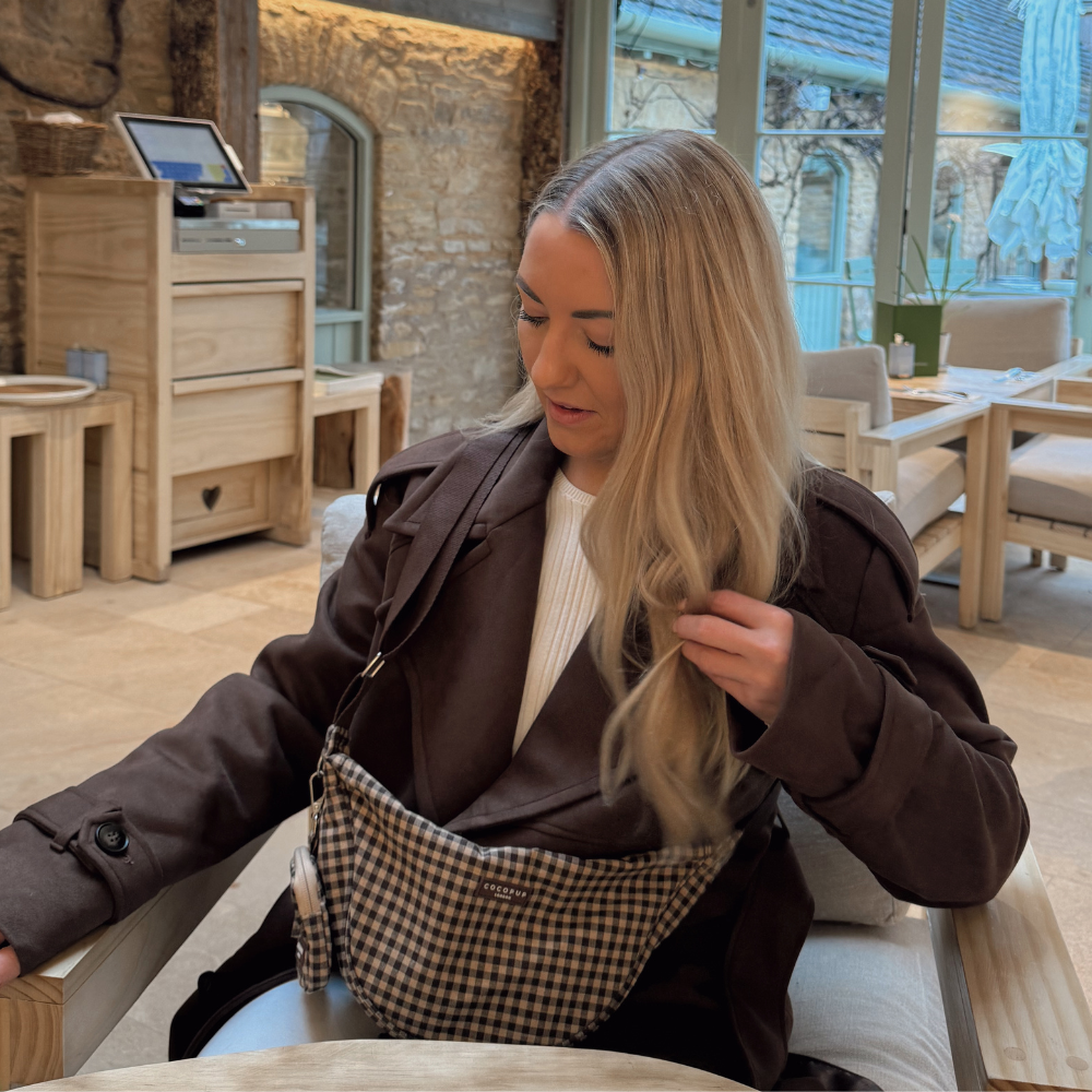Say goodbye to chaotic poop bags and squished treats in your pockets... and say hello to our all encompassing Crossbody Crescent Dog Walking Bag in Cotswold Check! Who knew walking your Pup could look so stylish... the perfect solution to your Dog Walking needs.