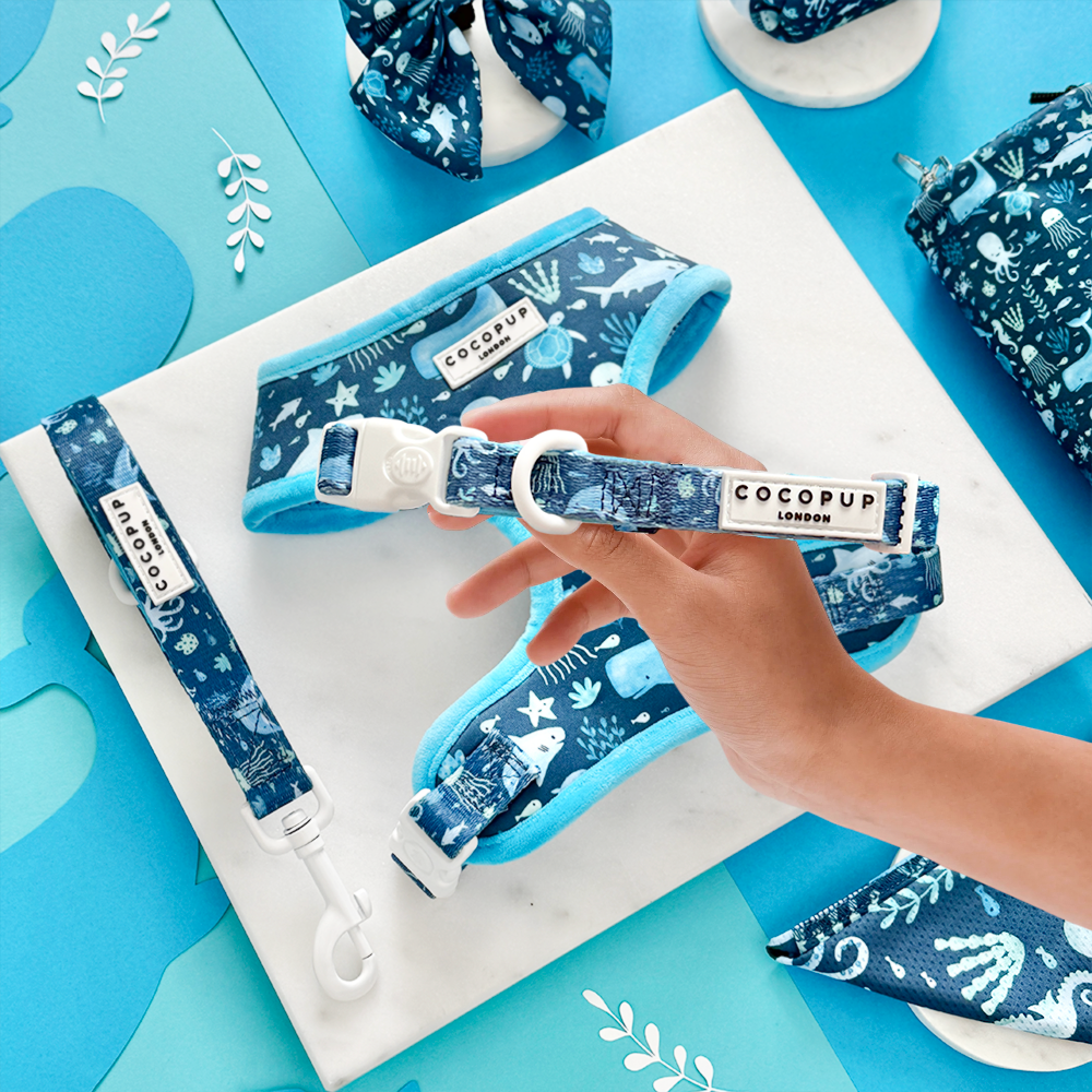 Sea Life Pawty Adjustable Neck Harness, Lead & Collar Bundle